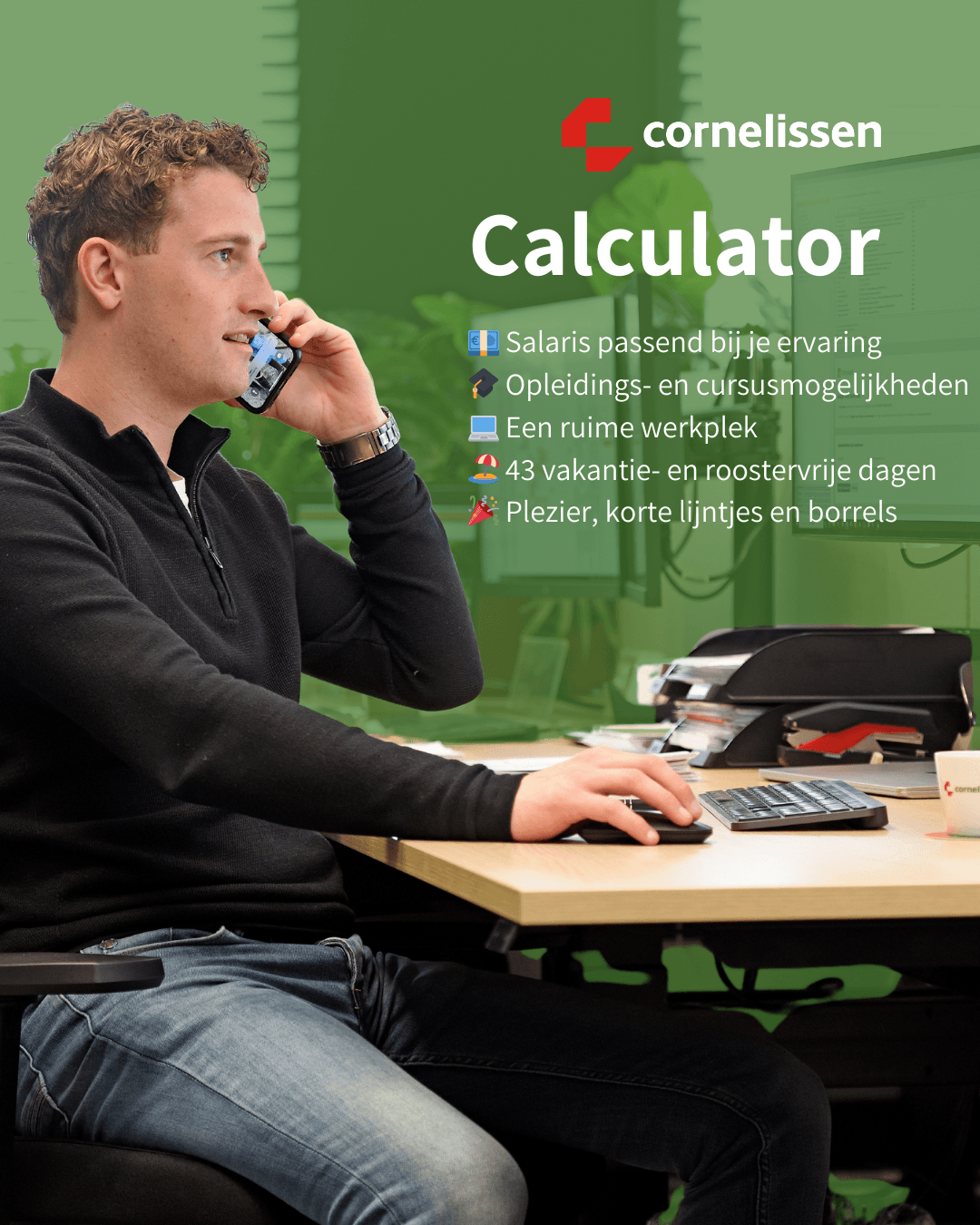 Op basis van je antwoorden zullen we bepalen of je geschikt bent om Calculator bij Cornelissen Aannemingsbedrijf te worden.